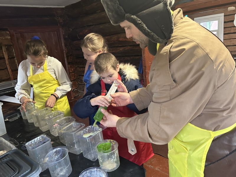 ☀ День начался с театра - экспромта, где каждому была выделена роль. А дальше искали клад, пели в караоке, стали участниками мастер-класса по мыловарению и свечеварению, сделали фигурки из гипса. Горячий обед в полевых условиях был отличным завершением этого морозного дня.